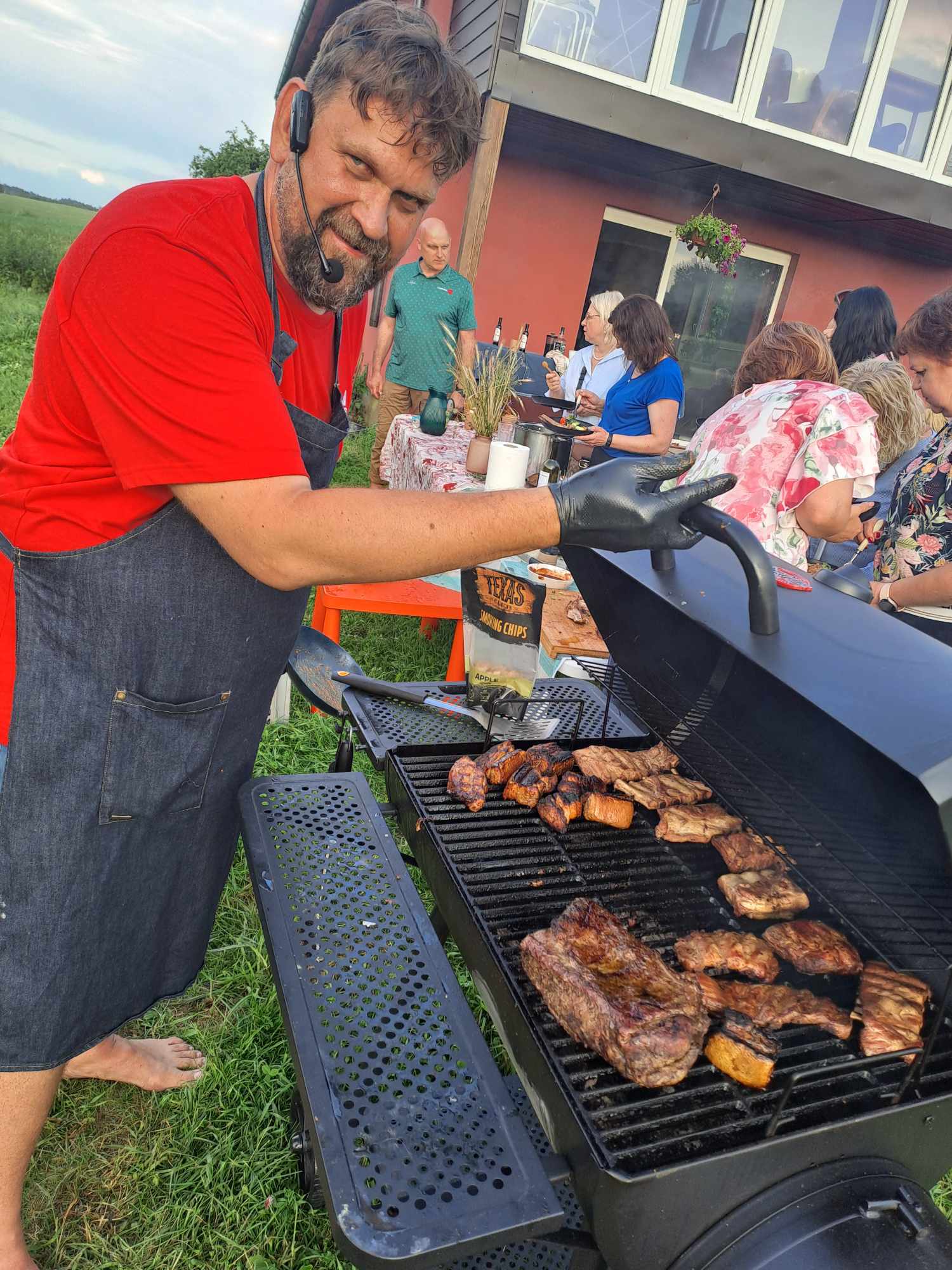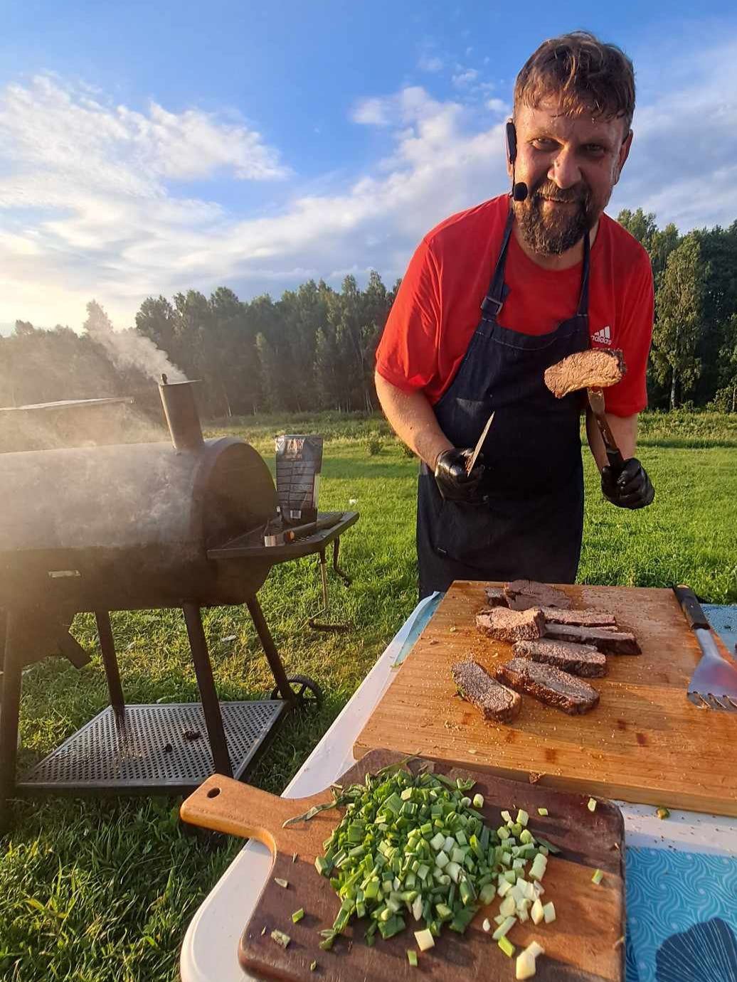 - Iki lėtai keptų (slow cooked) šonkauliukų su rūkyto OBUOL'io padažu